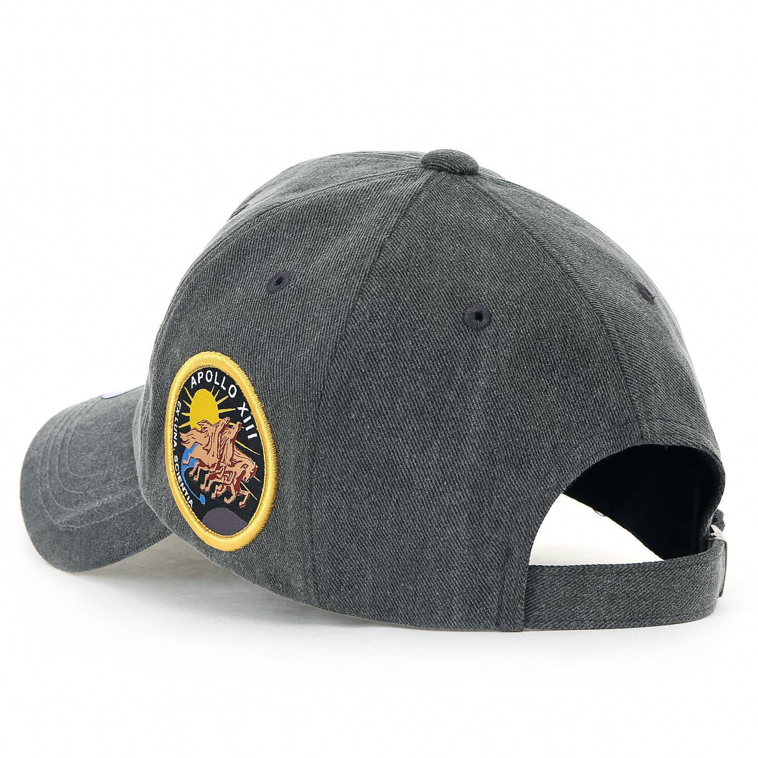 ililily NASA Meatball Logo Embroidery Baseball Cap Apollo 13 Patch Trucker Hat Style: basic cotton baseball cap logo embroidered trucker hat Trim/Embellishment: cotton baseball cap with NASA logo embroidered on front and apollo 13 patch on side. trucker cap has adjustable strap back closure. Crown: round top button dad hat. inner of cap is lined with sweatband for optimal wearing comfort. Officially approved high-quality NASA logo baseball cap. Inner band: approx. 57cm (7 1/8) / brim width: approx. 8cm (3")