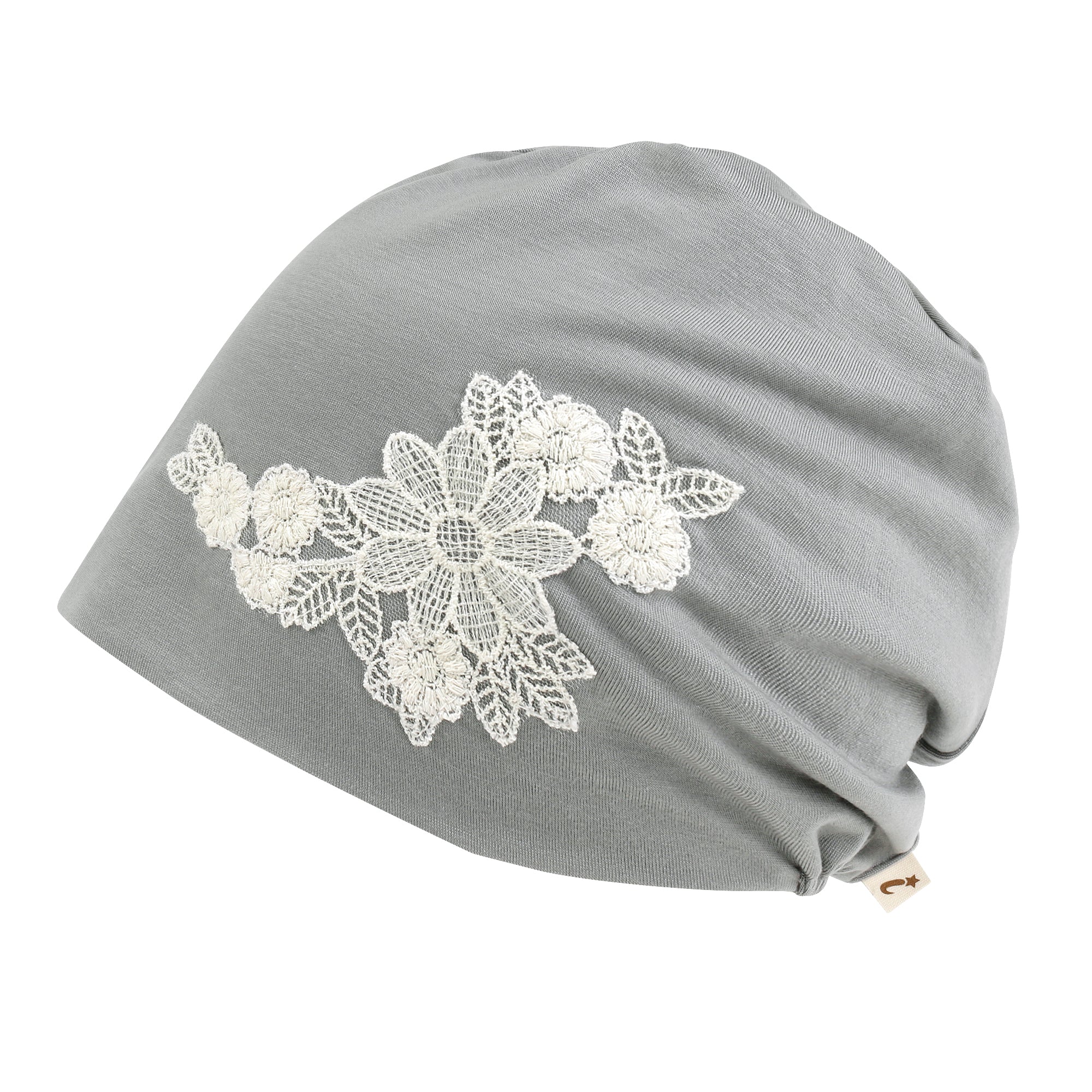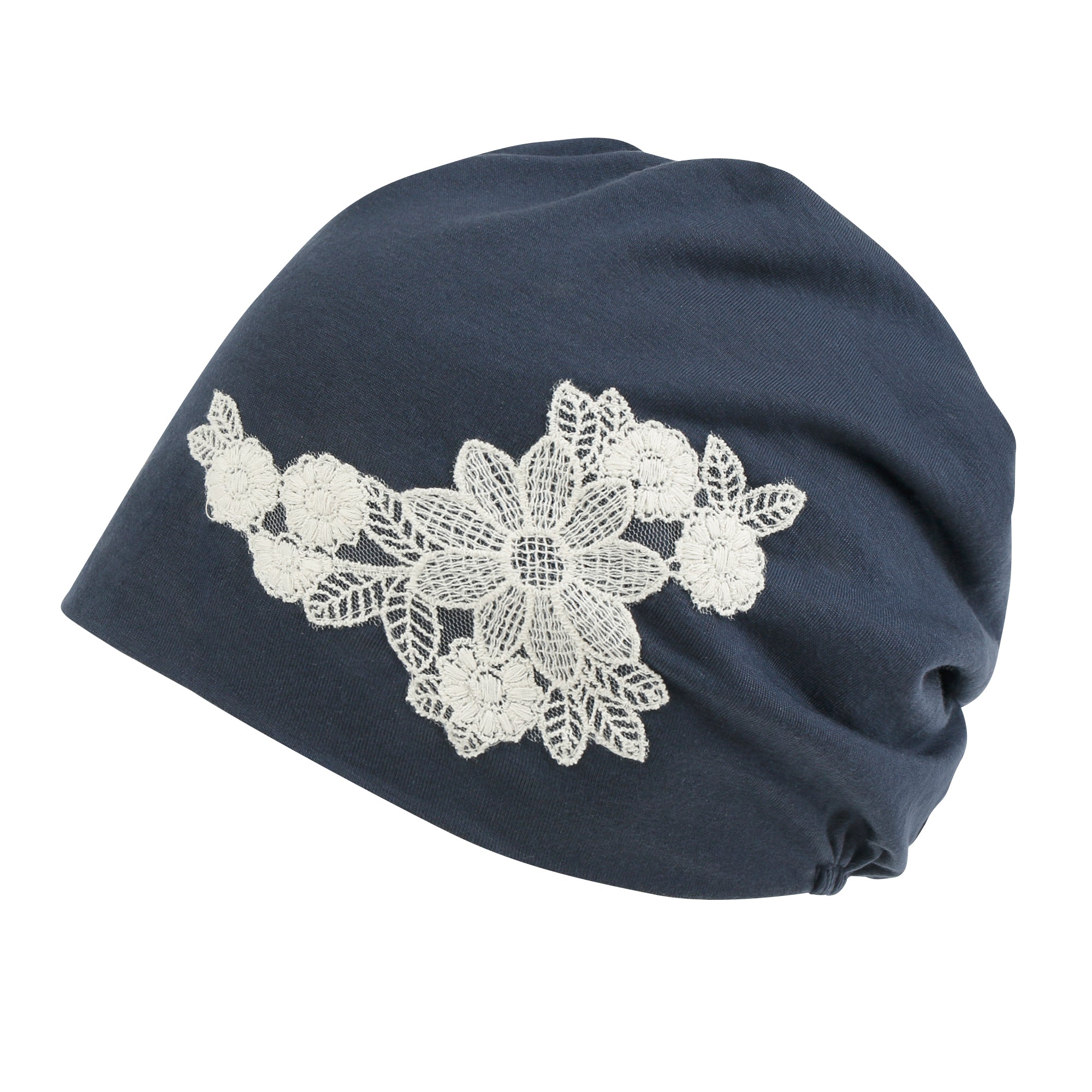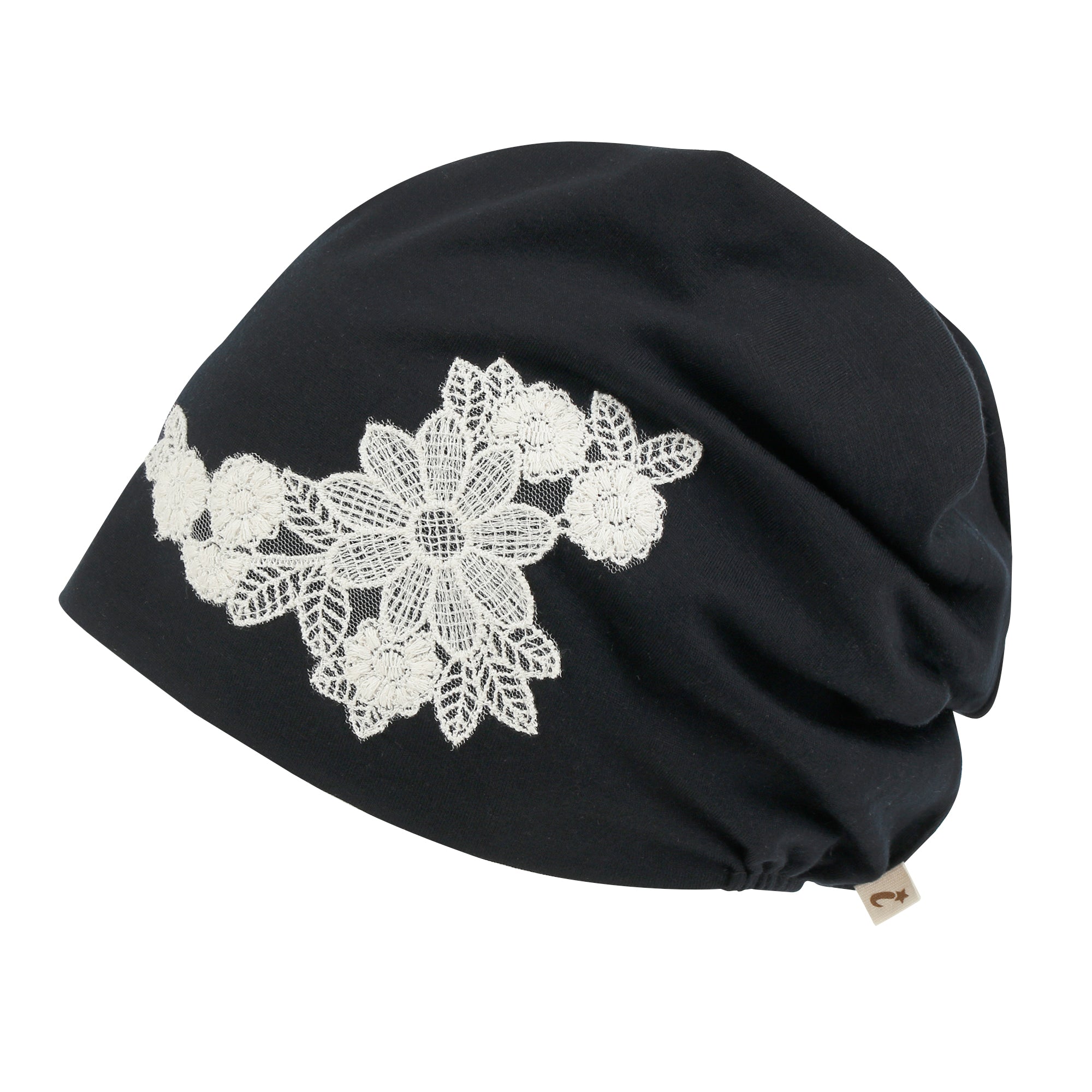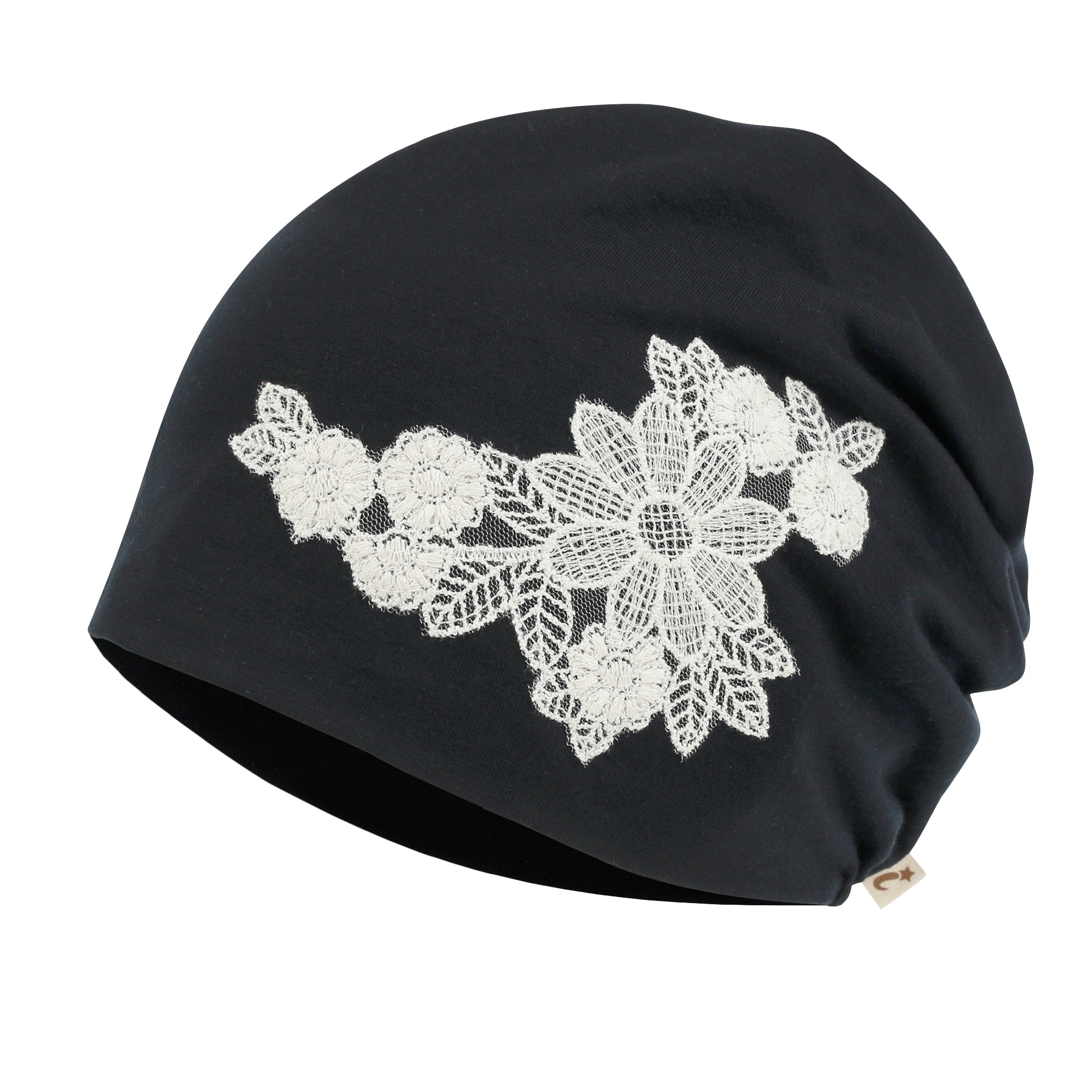 ililily Tencel Lyocell Flower Lace Motif Chemo Beanie Soft Head Cover Sleep Hat
