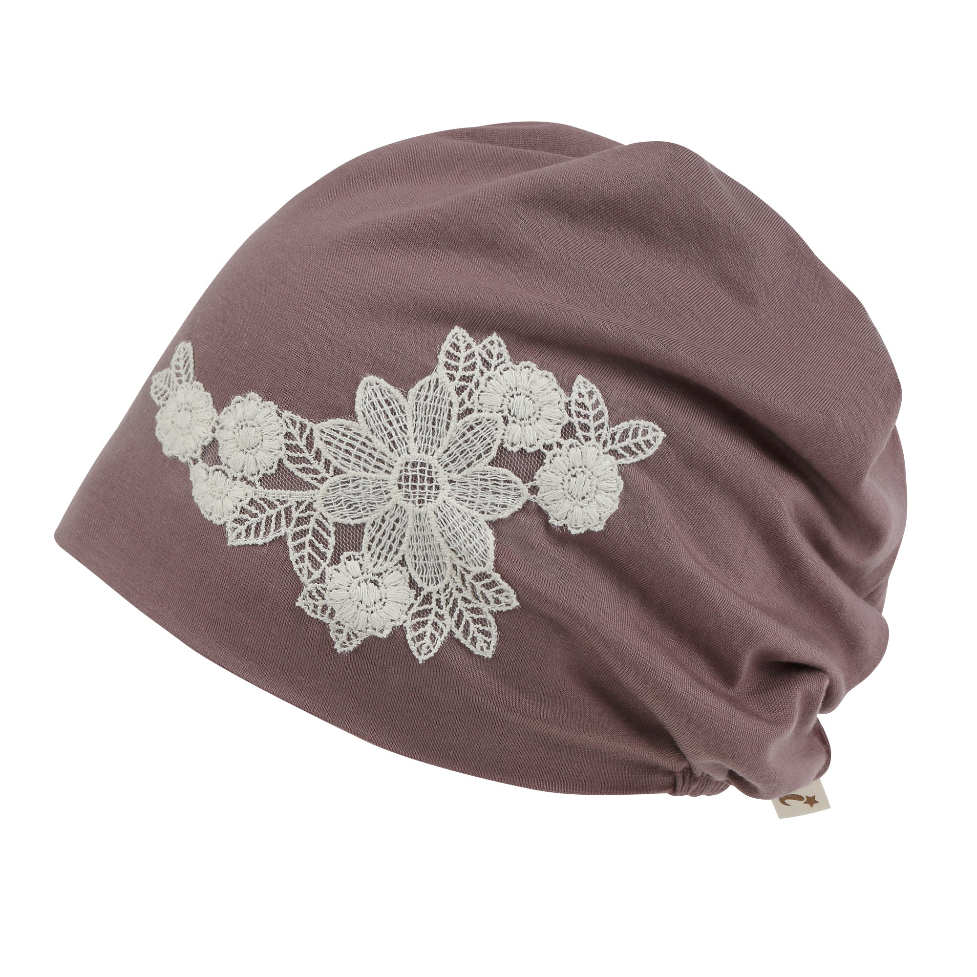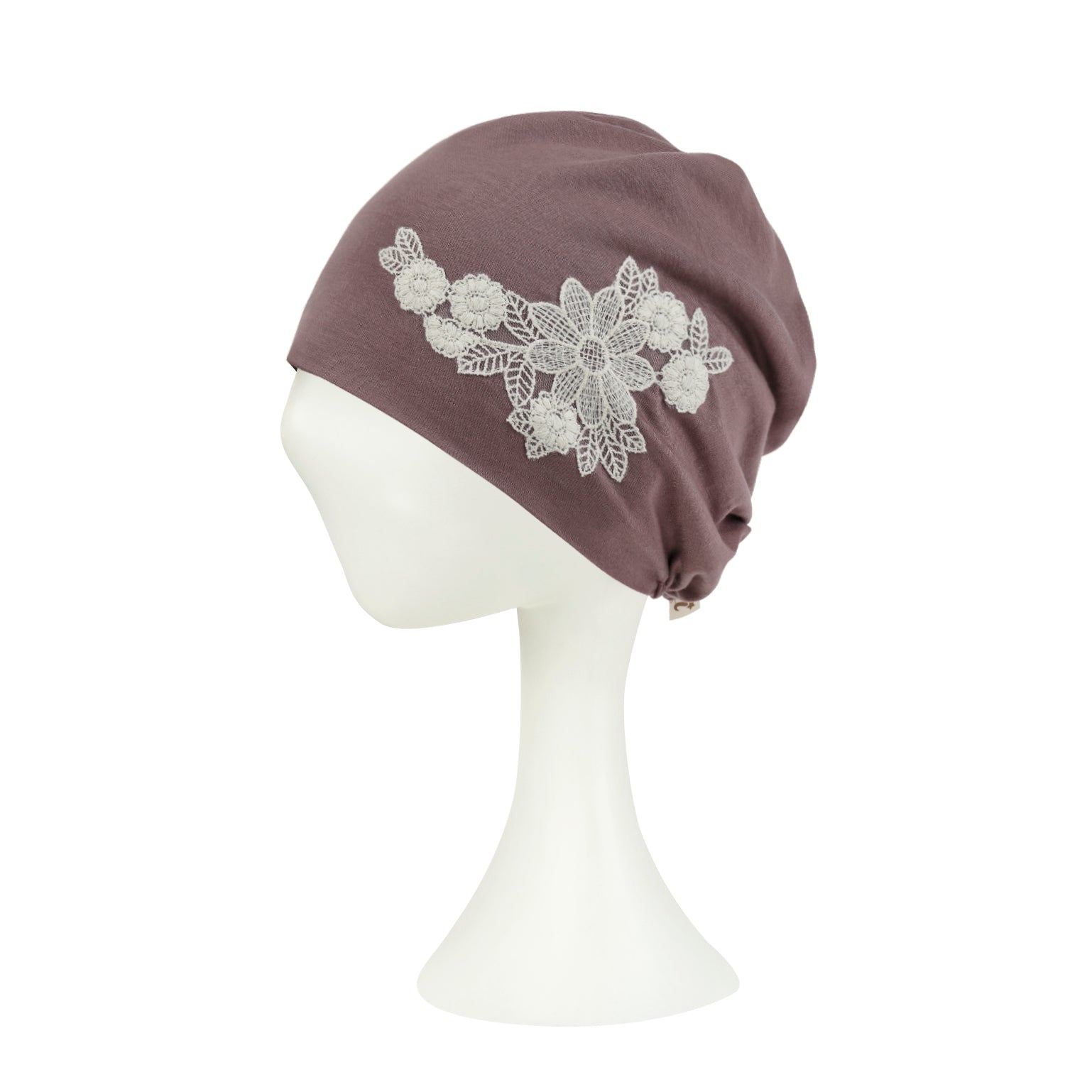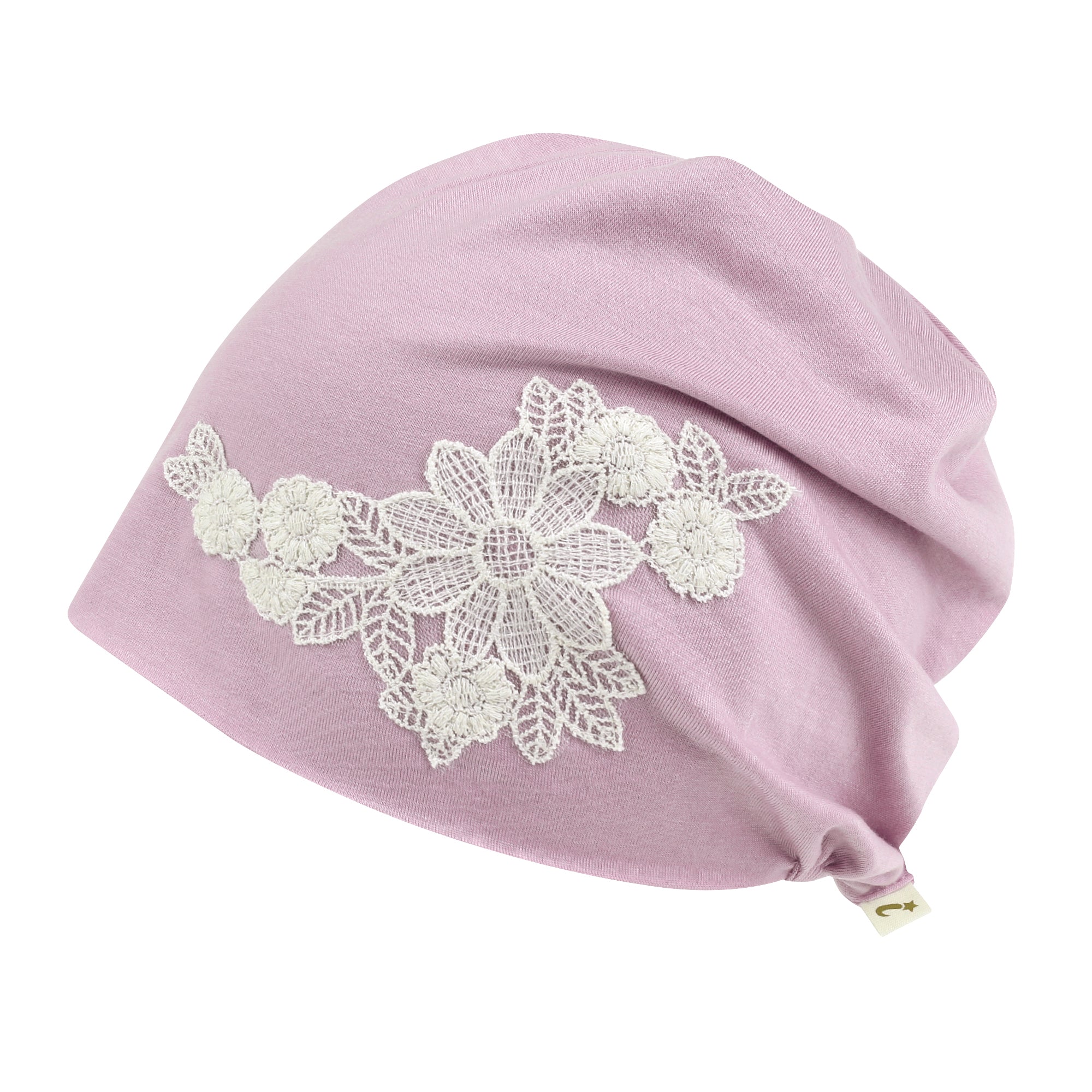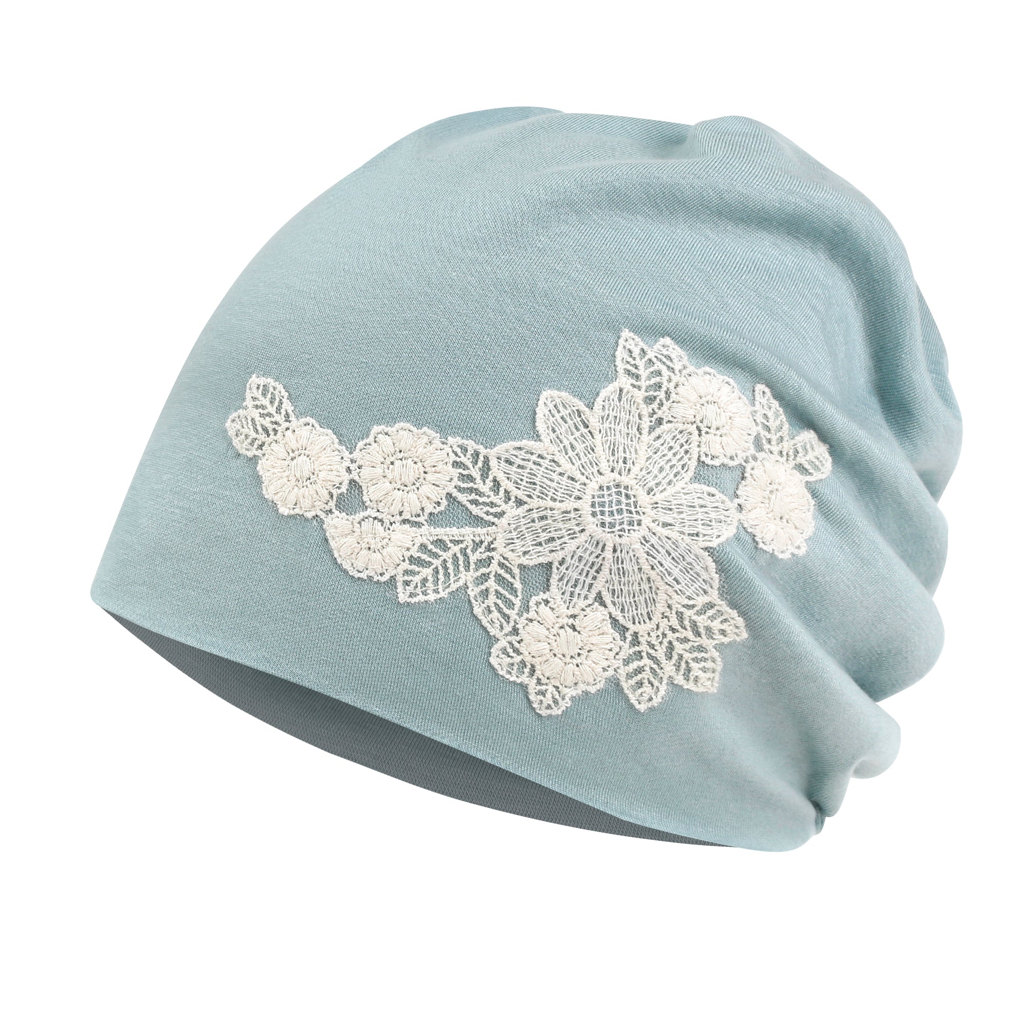 ililily Tencel Lyocell Flower Lace Motif Chemo Beanie Soft Head Cover Sleep Hat