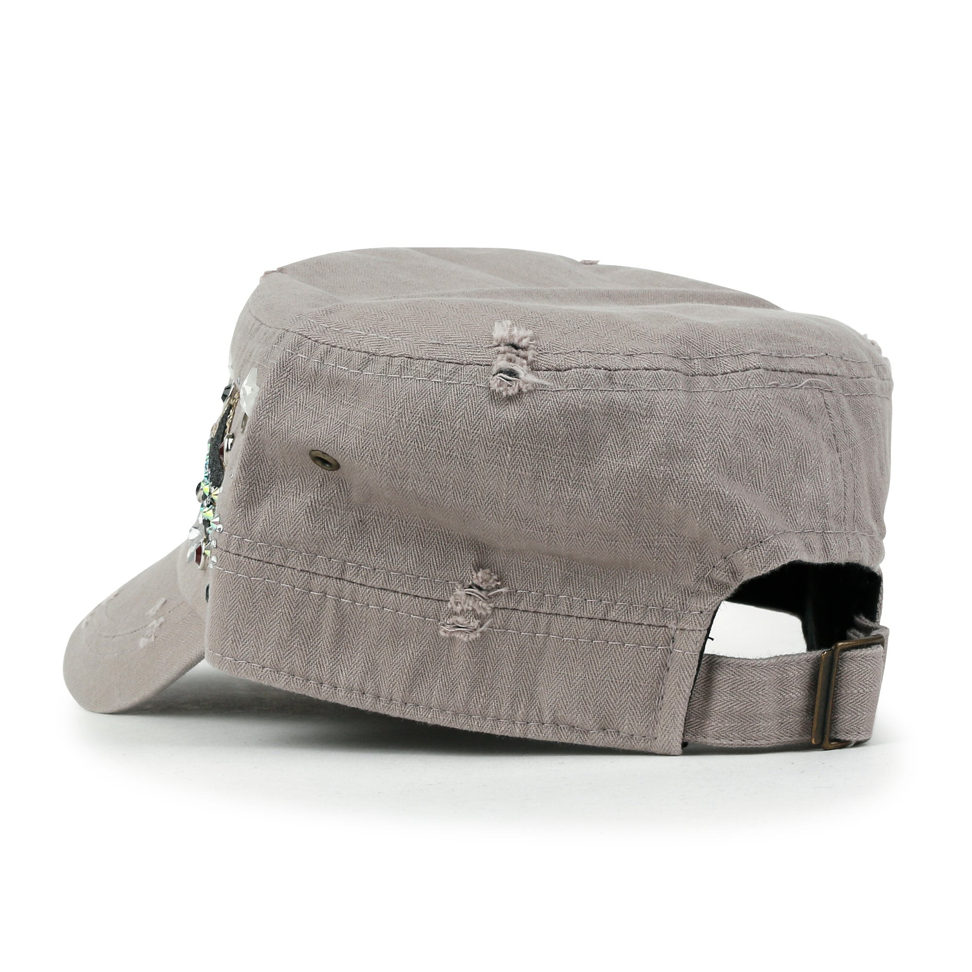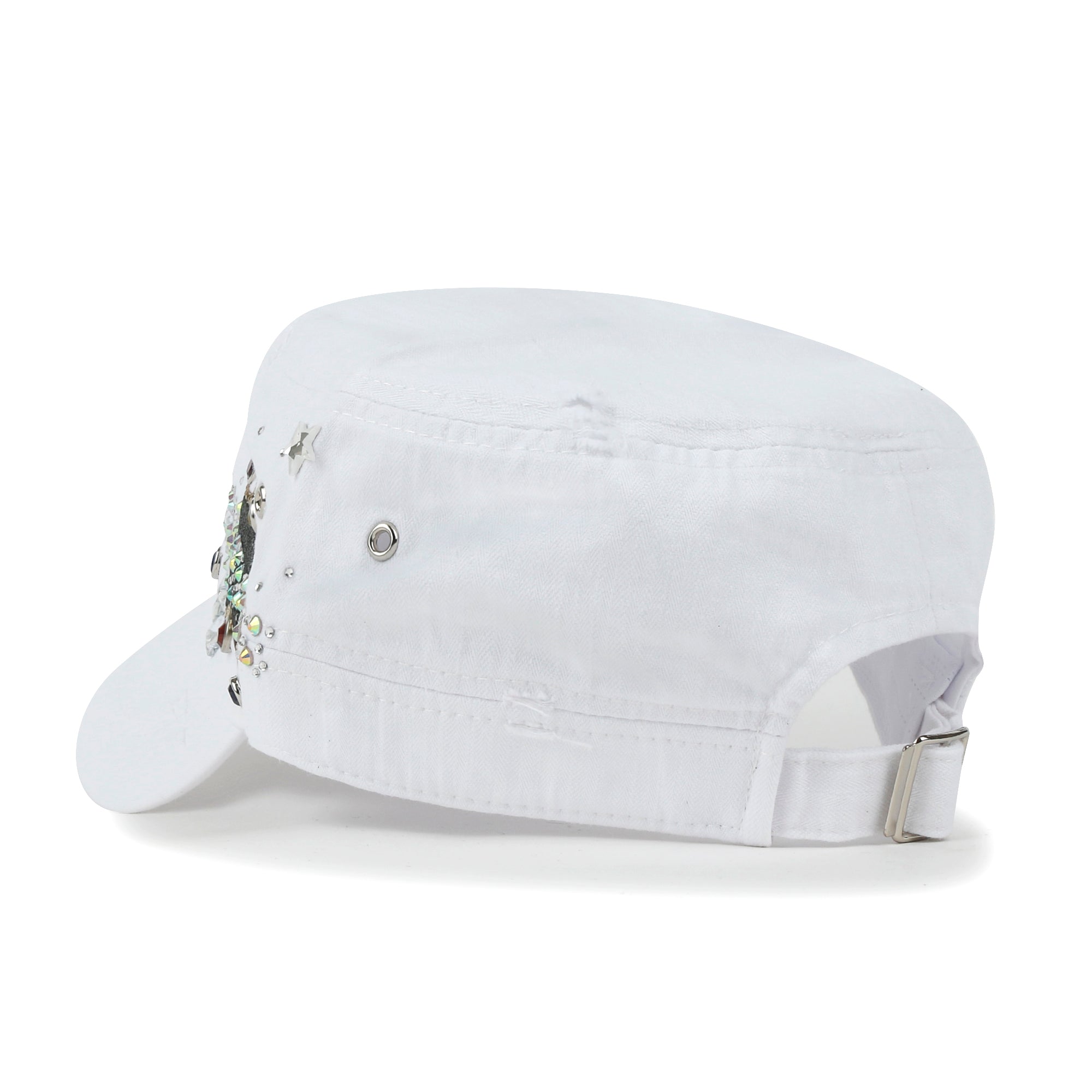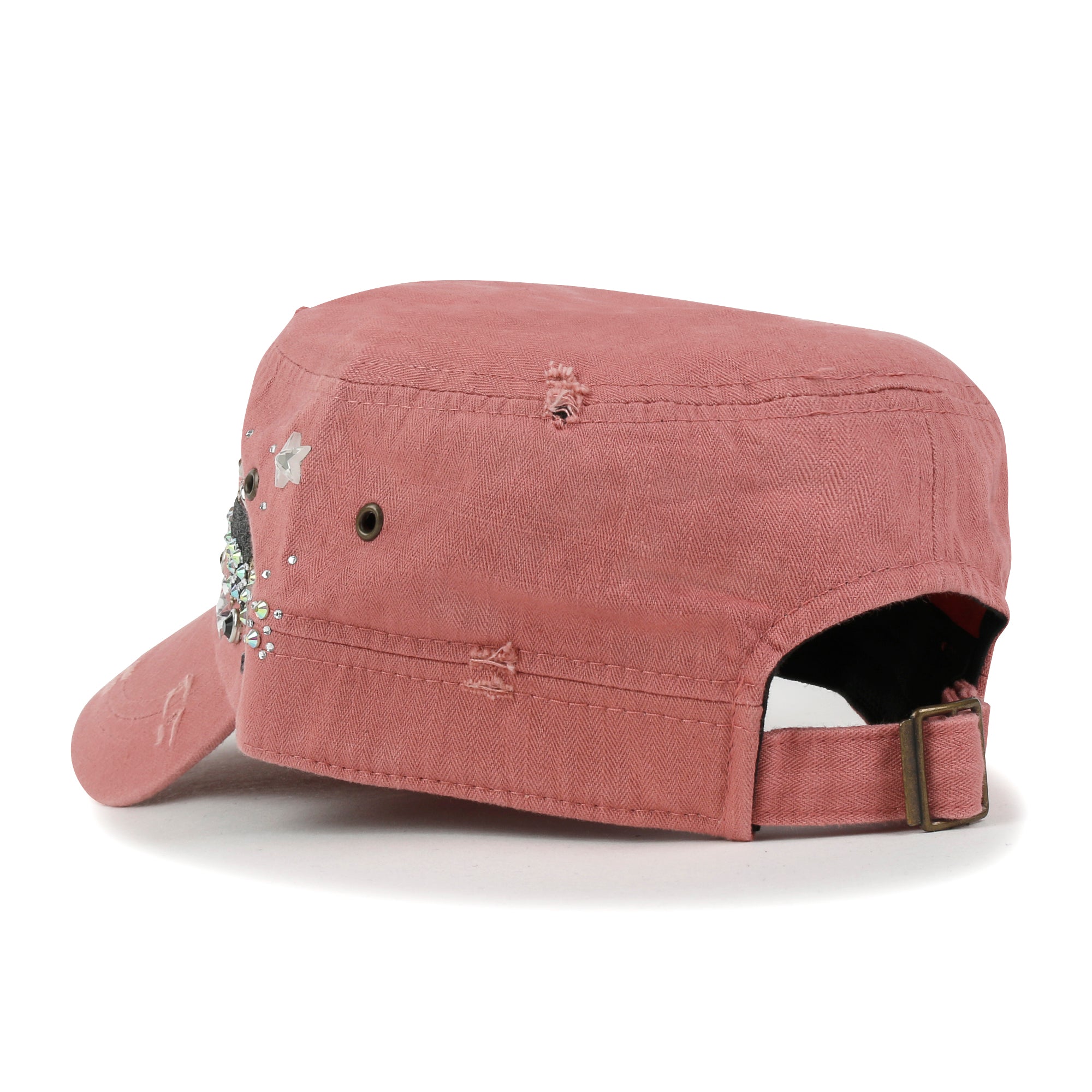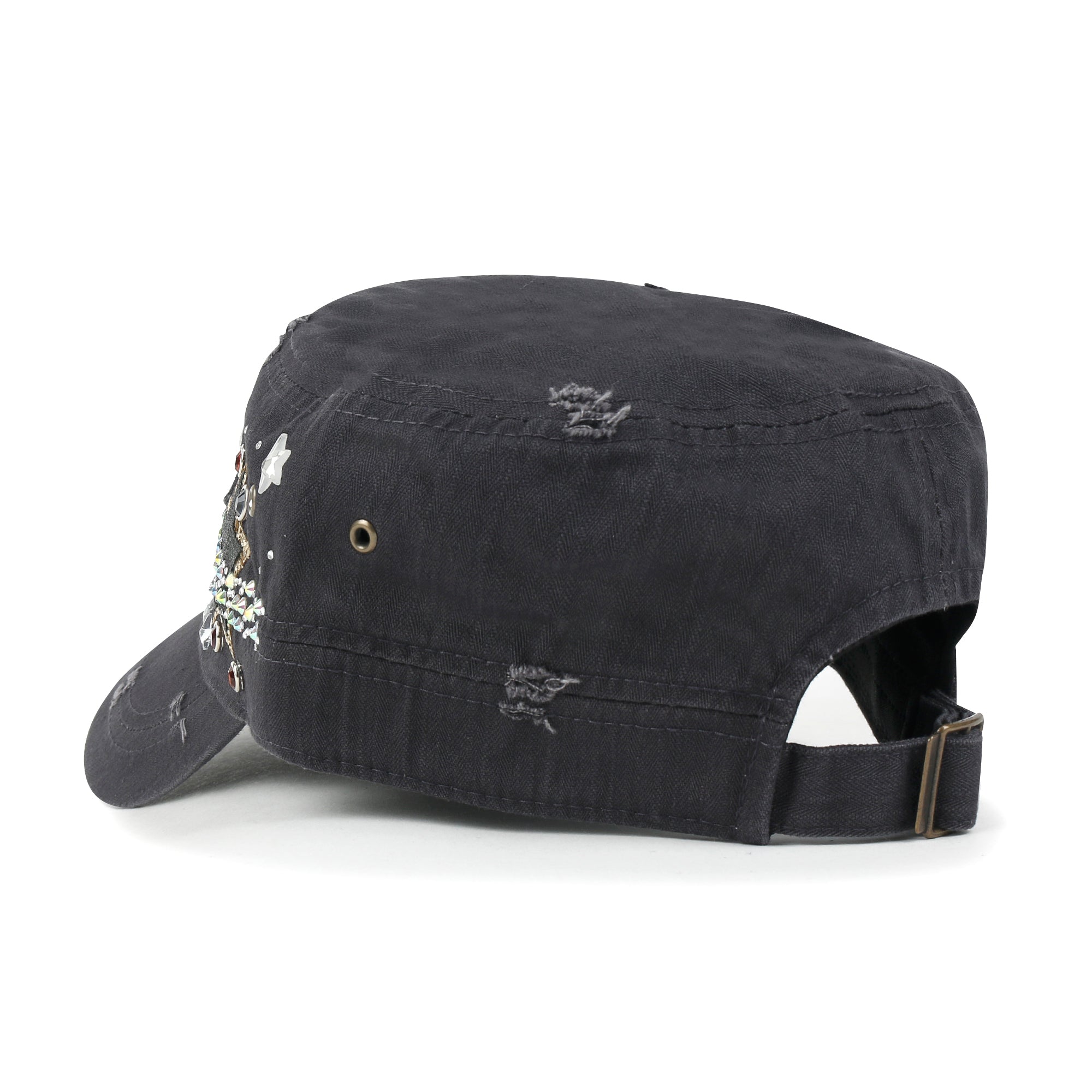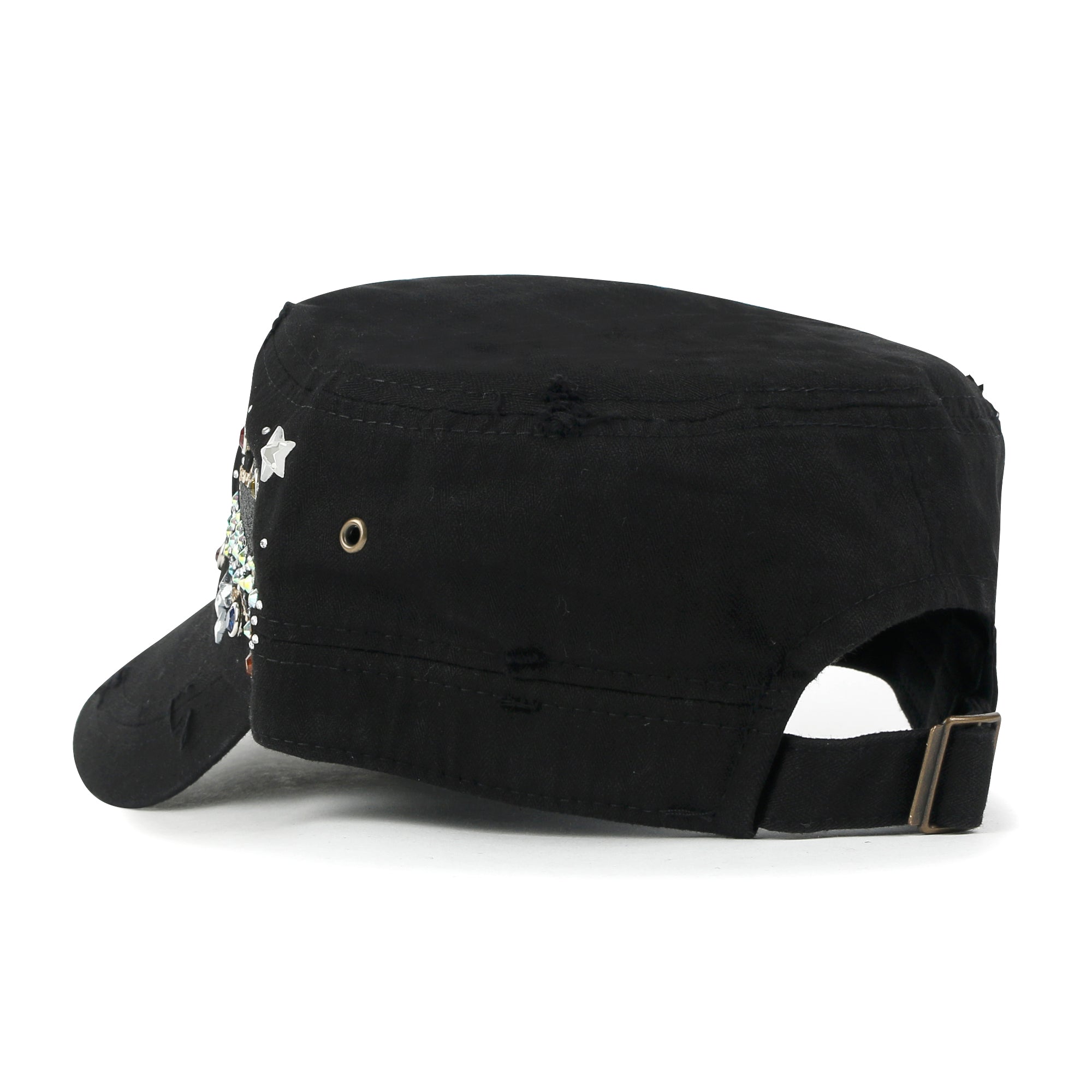 ililily Vintage Distressed Star Spangle Cotton Army Hat Rhinestone Cadet Cap